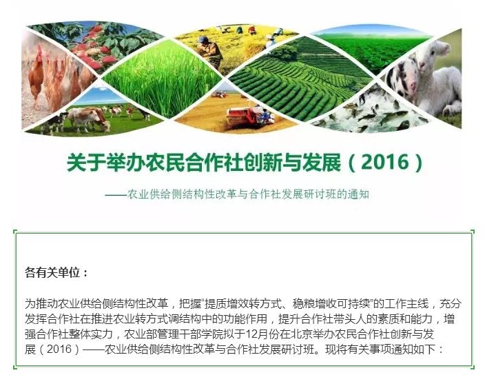 关于举办农民合作社创新与发展(2016)——农业供给侧结构性改革与合作社发展研讨班的通知